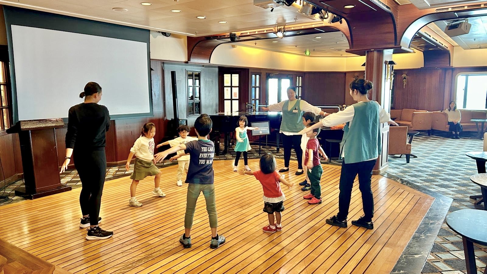 ピースボート英語プログラム(GET※)の先生として乗船しているシャネルが、親子で楽しむことができる企画を開催してくれました!
