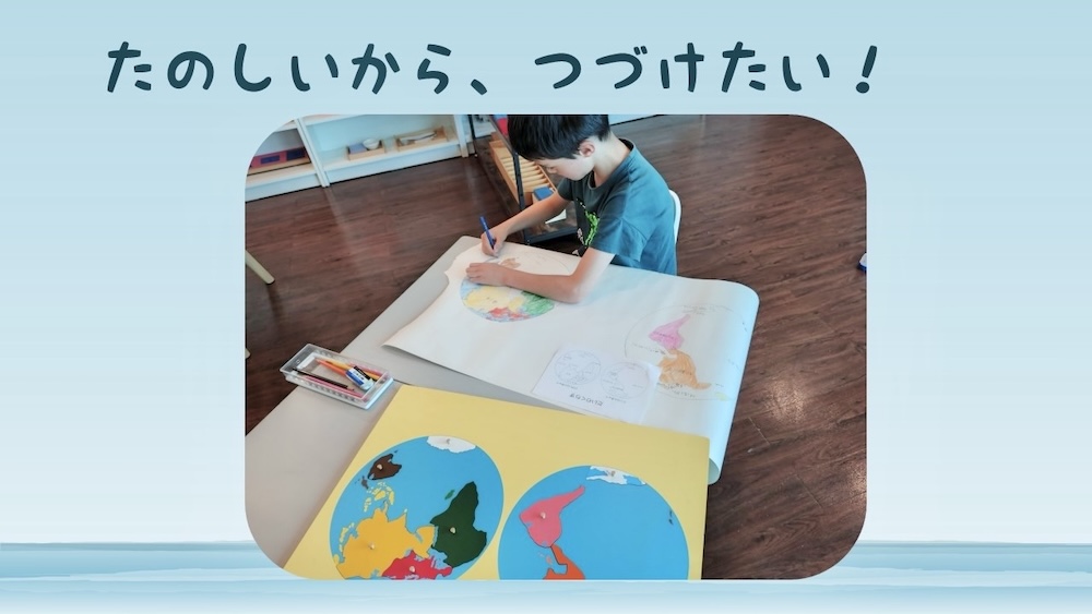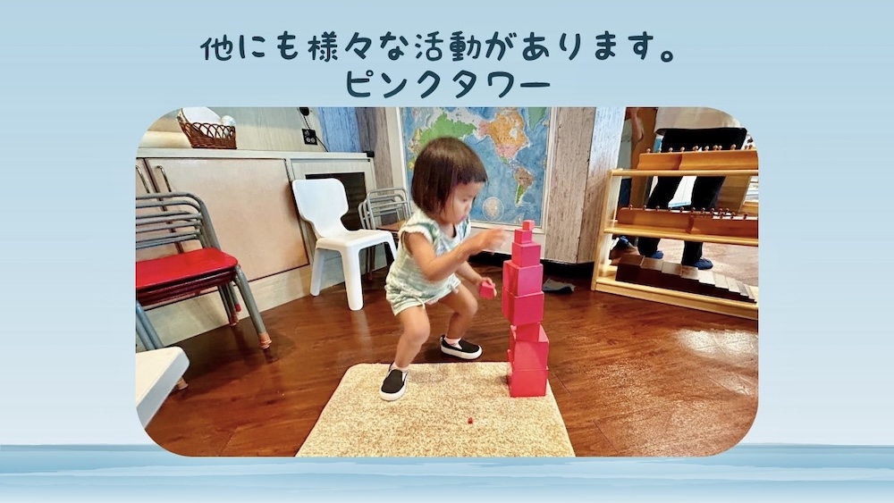 (*:子どもが真剣に取り組むことは “Play / 遊び” ではなく “Work / お仕事”。モンテッソーリ保育の現場では、子どもの活動を “Work / お仕事” と表現します。)