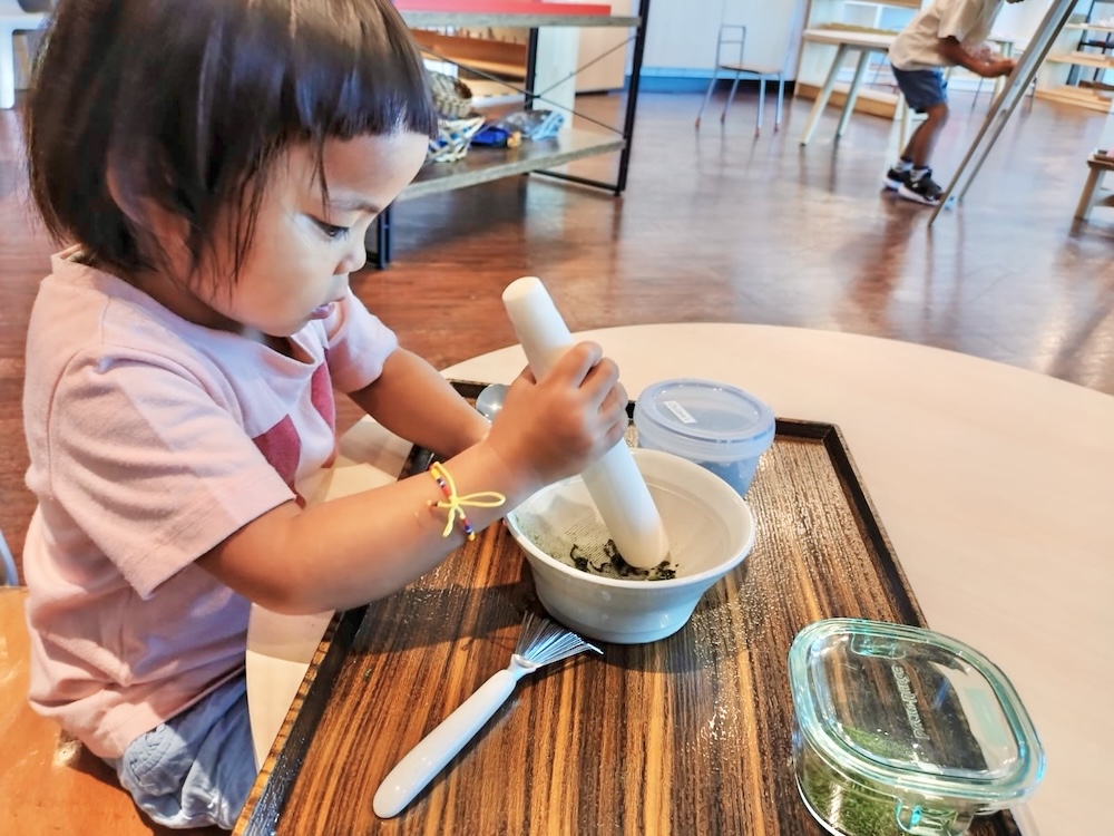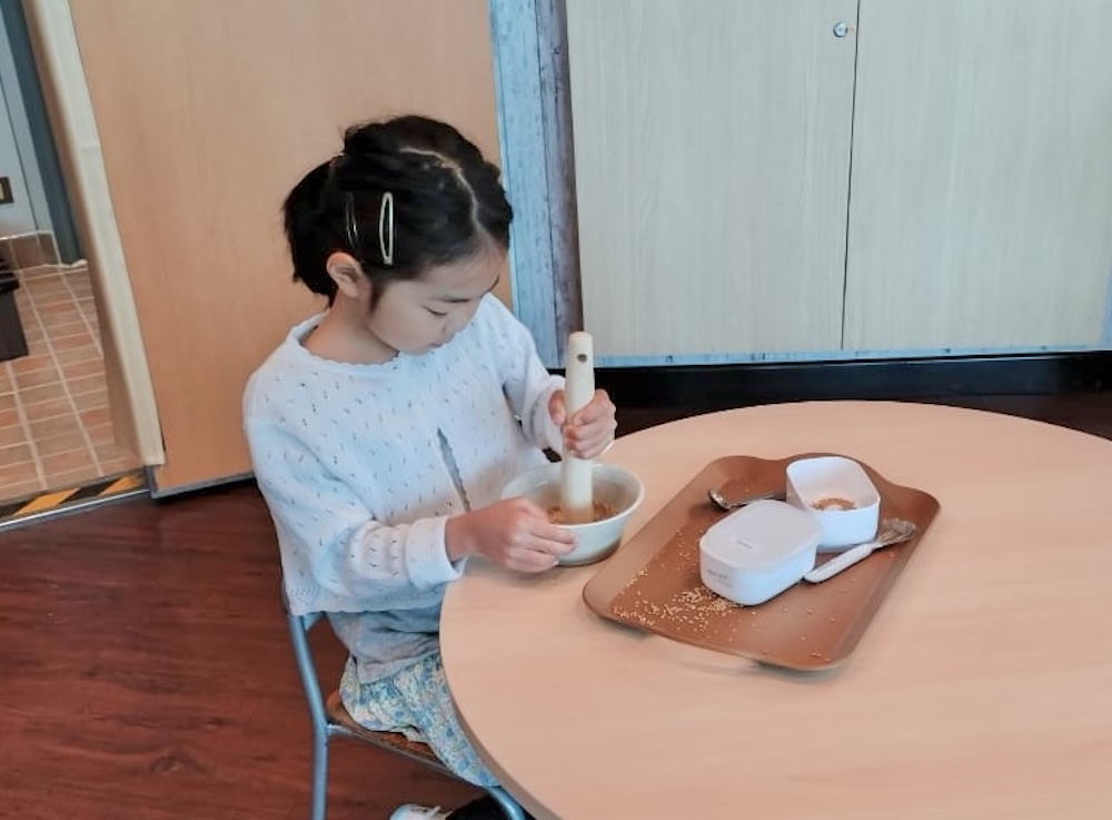 今では、【鰹節】、【煮干し】、【ゴマ】、【あおさ】と、4種類のふりかけ作りセットが、子どもの家に用意され・・・