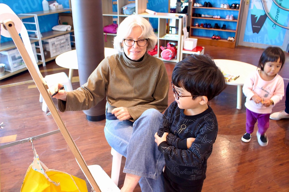 「グルグルしてるね(グルグル描いてるね)」と、子どもたちも楽しそう。