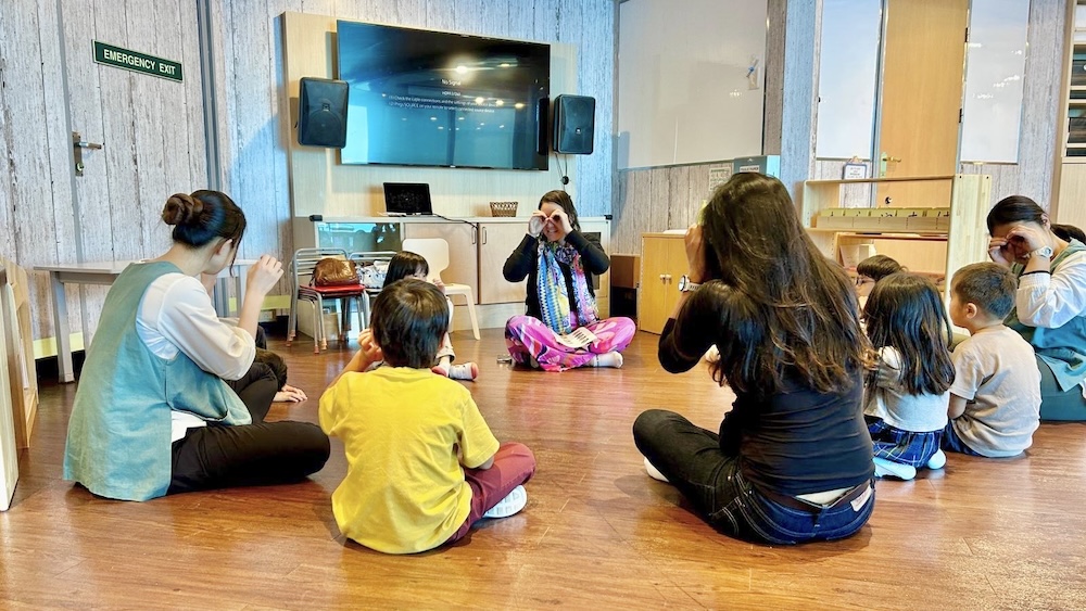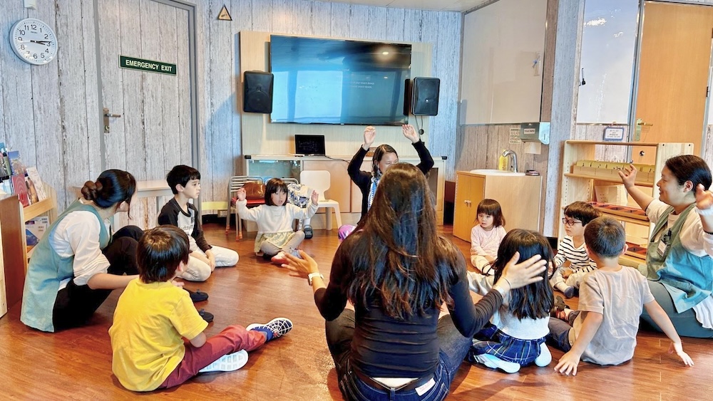 次はみんなで輪になり『Sing a Rainbow』という歌を歌います🌈