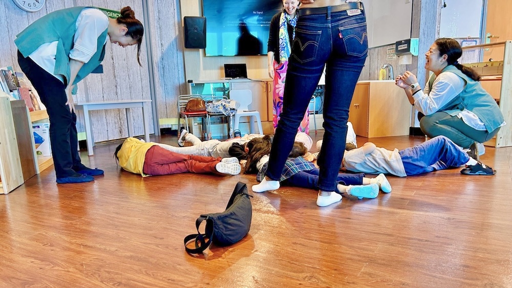 すると、子どもたちが床に寝ころびます。