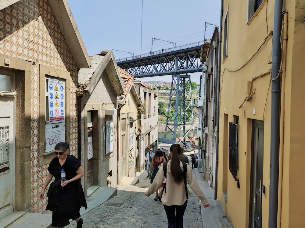 陸橋を通り川を渡ると、ポルトで有名なポートワインのワイナリーが立ち並びます🍷