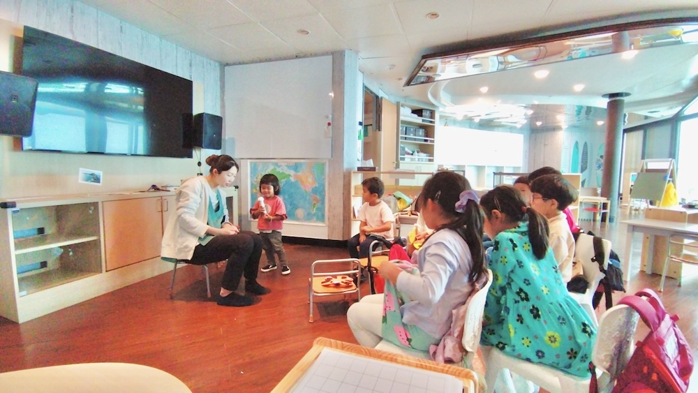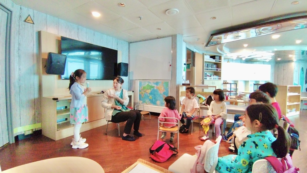 ランチへ出かける前や、帰りの会の時間に「寄港地で楽しかったこと、発表したいことがある人?」と聞くと、「ハイ!」とすぐに手が挙がるお友だちや、少し考えてから手を挙げたり、お友だちの発表を聞いてから「あ、そういえば!」と思い出したように手を挙げる子など様々です☺️