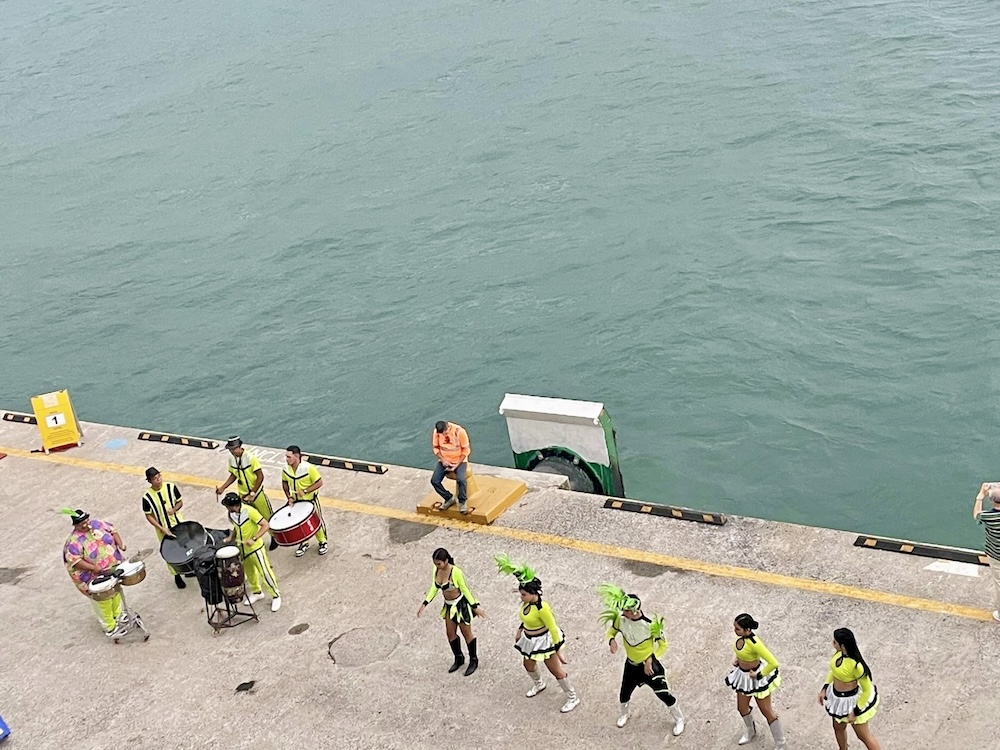 桟橋では現地の音楽隊が元気が出る太鼓の音とダンスで歓迎してくれましたよ✨