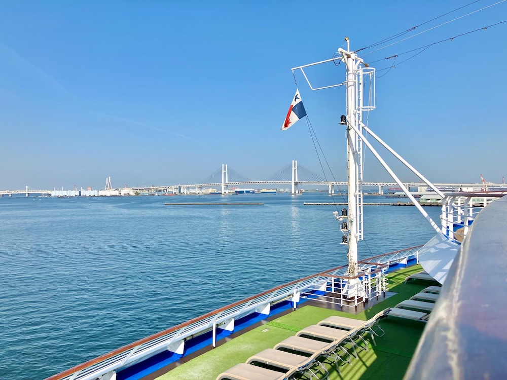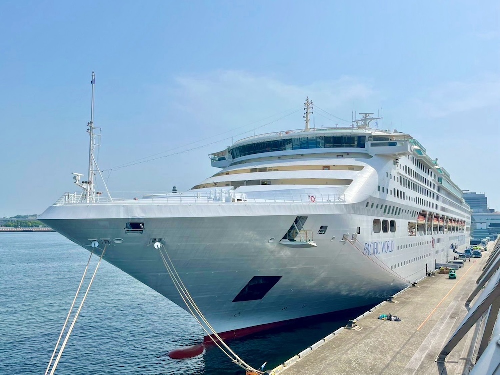 船はすでに横浜港大さん橋客船ターミナルに着岸しています💡